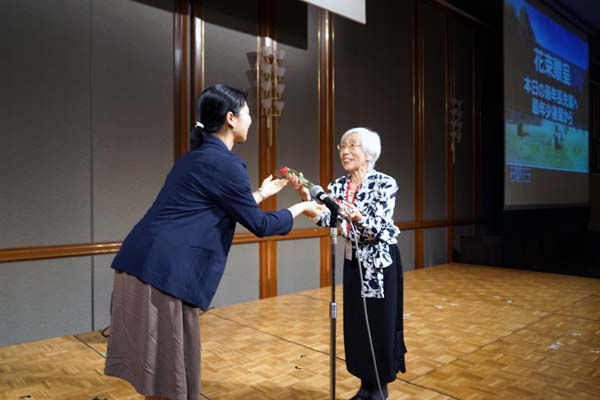 その後、庁立39回の大先輩へ、最年少の北高63期より花束贈呈。