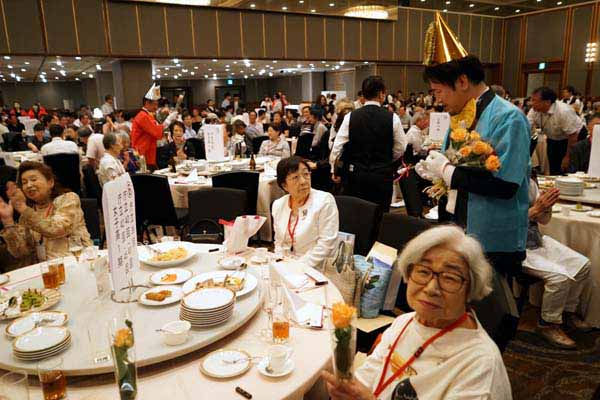 テーブルの皆さんにも、礎石くん、礎石ちゃんからお花が贈られました。
